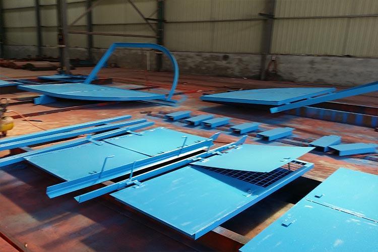 防火柵欄門是防火門與柵欄門的結(jié)合體,因此具備了兩者的特點(diǎn),目前的使用是非常廣泛的,主要用于主變電所與水泵房防水門來水側(cè)、消防器材庫(kù)、材料庫(kù)等。防火柵欄門平常具有通風(fēng)功能,一旦遇到異常情況時(shí),就具備了防火功能,其結(jié)構(gòu)簡(jiǎn)單,操作方便。主要是在煤礦井下主排水泵房和主變電所硐室之間使用,在危險(xiǎn)環(huán)境下防火柵欄門能夠起到隔離火源的作用,防止火險(xiǎn)的蔓延。
